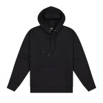 Pullover hood, drop shoulder, kangaroo pocket, self-fabric lined hood, no drawcord, garment dyed, sleeve cuff ribbing